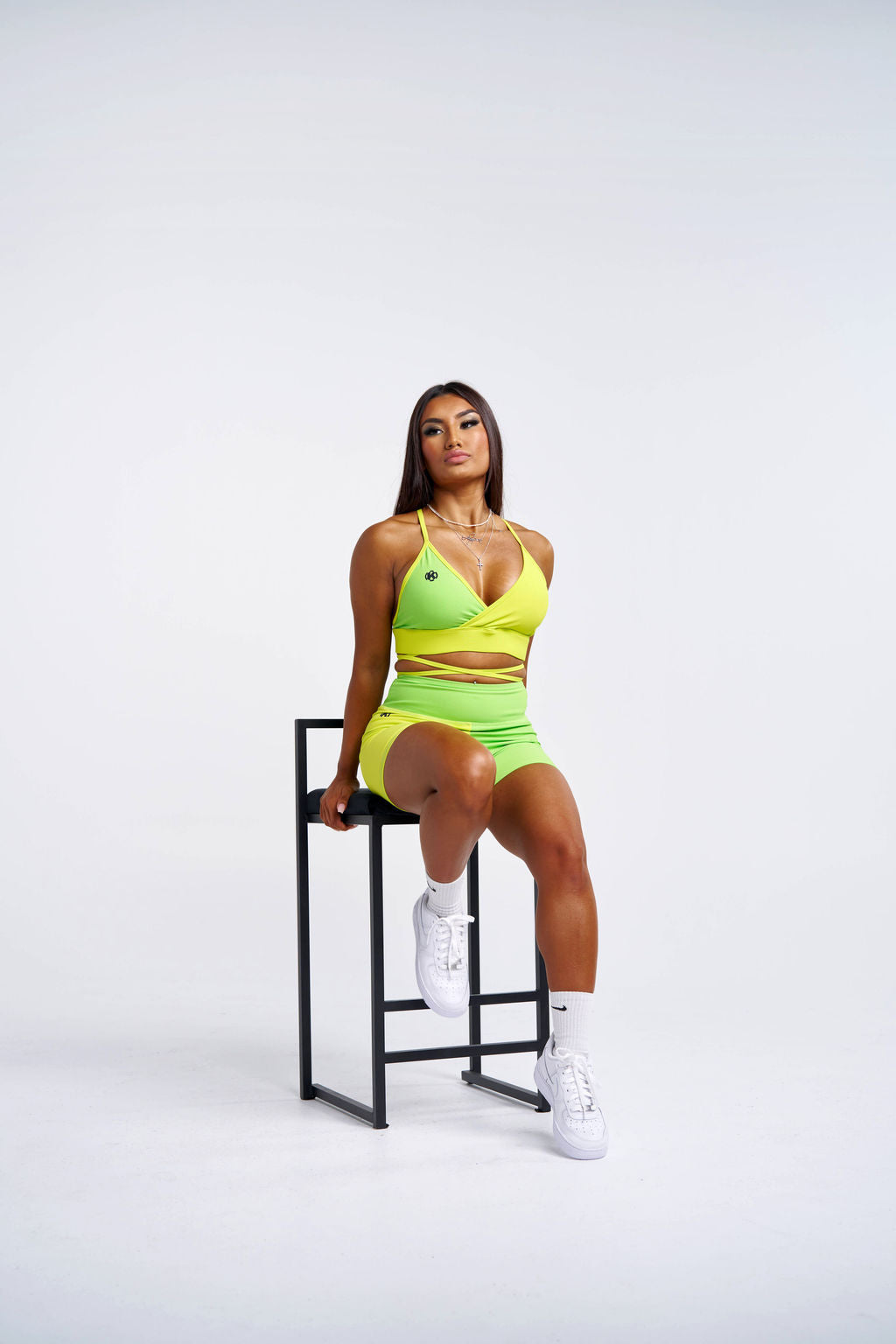 The stretch on these shorts is incredible - I can do full splits and deep squats without any restriction. Love how the neon green catches the studio lights during my classes.
